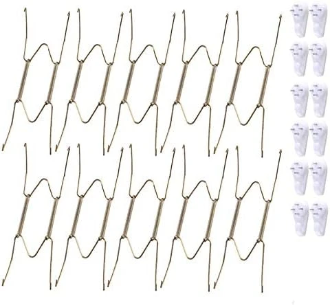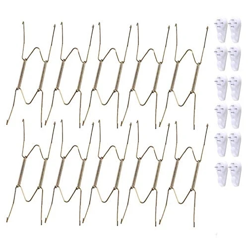 - 【What you get】Package comes with 10 pieces wall plate hangers and 12 Pack wall hooks, enough to meet the needs of daily life. Wall plate hangers are 7.5″ * 2.5″ and features a expandable spring design for fixing 7.5″-9″ round or square plates