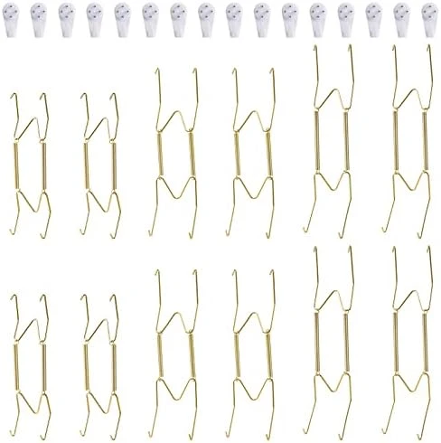 - [WELL MADE & PERFECT SIZE]: The wall plate hanger is made of top quality brass with golden color, well-made, sturdy, not easy to get rust. 6 Inch, fit for holding 6 to 7.5 Inch round or square plates. 8 Inch, fit for holding 7.5 to 8.5 Inch round or square plates.10 Inch, fit for holding 8.5 to 10.5 Inch round or square plates.