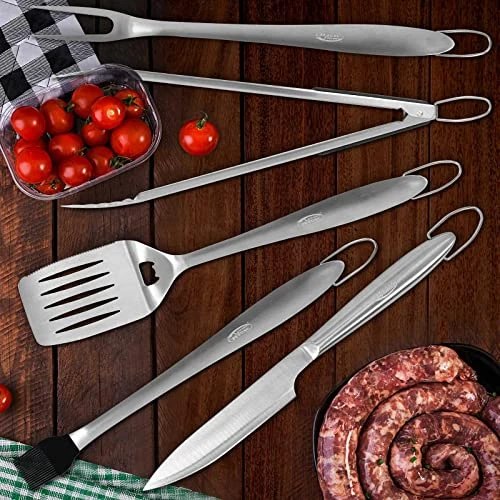 - Included Components: spatula, fork, tongs, basting brush, knife.