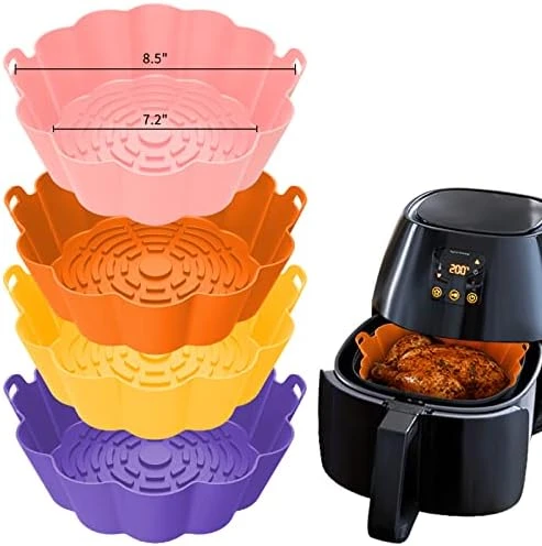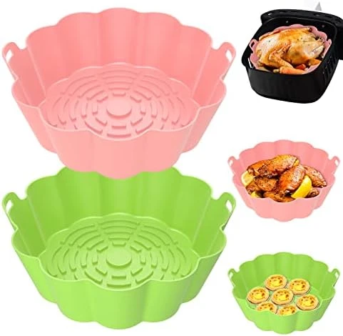 - BETTER THAN THE PAPER LINERS: Silicone air fryer liner are reusable, durable and eco-friendly. These liners are a perfect replacement for flammable parchment paper. No longer have to cut or shape parchment paper to fit in the air fryer. Saving money on parchment paper and cutting down on waste. Easy to clean and work so much better than the disposable paper liners. High-quality silicone liners are sturdy and the even have handles for ease of lifting them from the fryer.