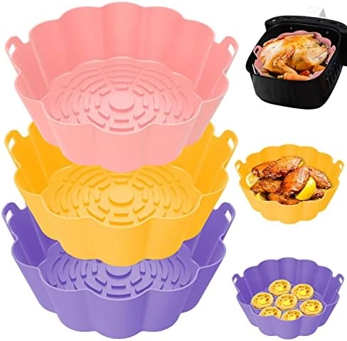 - OIL DRAINING DESIGN & WIDE APPLICATION: Silicone air fryer liners comes with a unique groove design, improves air circulation and heat distribution to cook your food in less time, makes residual oil or grease easy to flow out, enjoy healthier food. suitable for toaster, steamer, oven, instant pot and microwave, etc. Help to make foods like bacon, turkey, cookies, and bread…Perfect gift for Mother’s Day, holidays and birthdays.