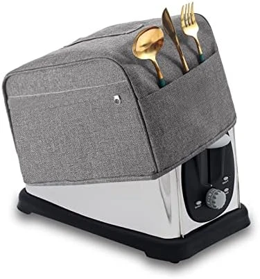 - STORAGE POCKETS FOR ACCESSORIES: 2 side pockets appliance covers are easy to hold handy tools like Toaster Tongs, jam spreader knife, recipe, leftover bread. If you are not satisfied with the toaster cover, our 24 hours customer service will help you any time.