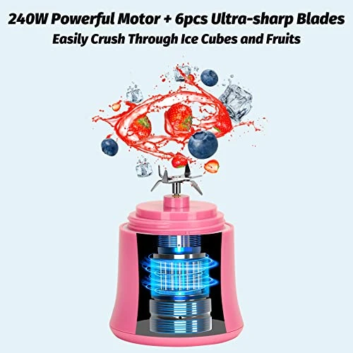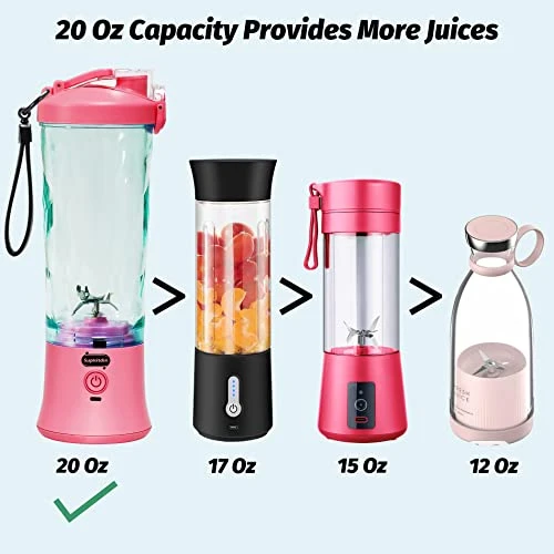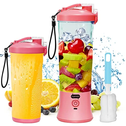20 Oz Portable Blender USB Rechargeable, Supkitdin Waterproof Personal Blender For Shakes And Smoothies, With 6 Ultra-sharp Blades For Travel, Office & Sports (Red Pink)