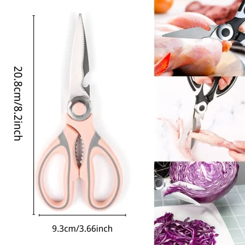 - ✂Comfortable and Convenient: The heavy duty kitchen shears with slip resistant handles, which are ergonomic and soft touch, When you cut the food, this Kitchen scissors can help provide stability and absorb pressure. At the same time, it is not only convenient to use, but also easy to clean, just wash with water, and then dry naturally.