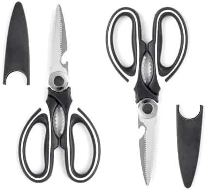 - ✂Multi-functional Design: Sawtooth design at the handle can be used to clamp crab, clamp seafood, easy and convenient, can also be used to open nuts. High quality hardened stainless steel blades easily cut through meat, fish, shrimp chicken, seafood and vegetables. Kitchen scissors can also as a bottle opener. Multi-function kitchen scissors, no need to scramble to find a variety of tools, this kitchen scissors is enough.