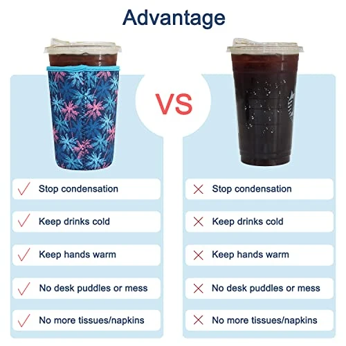 - Stops Condensation & Prevents Spills: Our drink sleeve can absorb the condensation water on the cup, keep your hands warm, and enjoy your iced beverage (no more freezing hands in the winter!). No more wet, slippery hands and desk puddles.