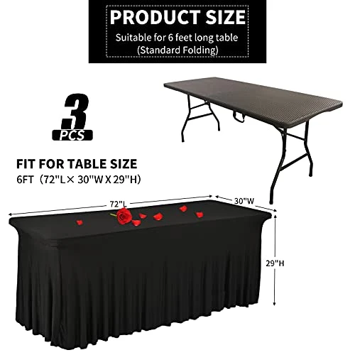- 🎈Excellent Service: fitted table covers for 6 foot tables, manteles de mesa elegantes, table skirts for rectangle tables 6ft, spandex table covers 6ft. If you do not like them, please do not worry and let us know. we can do refund or other solution of you prefer. Due to the long time shipping, some wrinkling can occur, it’s normal. Just use the washer for a short time washing,or ironing them gently.