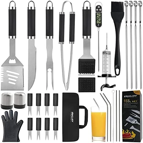 - Included Components: (function(f) {var _np=(window.P._namespace(“DetailPageProductOverviewTemplatesJava”));if(_np.guardFatal){_np.guardFatal(f)(_np);}else{f(_np);}}(function(P) { P.when(‘A’).execute(function(A){ A.on(‘a:truncate:po-attribute-truncate-4:updated’, function(data) { var isTruncated = !data.truncateInstance.getIfTextFits(); var seeMoreElement = document.getElementById(‘po-attribute-see-more-id-4’); if(seeMoreElement) { seeMoreElement.style.display = isTruncated ? ” : ‘none’; } }) }); })); 4 in 1 spatula, meat fork, power tong, meat injector, thermometer, cleaning brush, 8 corn holders, salt&pepper shakers, knife, basting brush, 4 BBQ skewers, silicone glove and stainless steel straw. See more