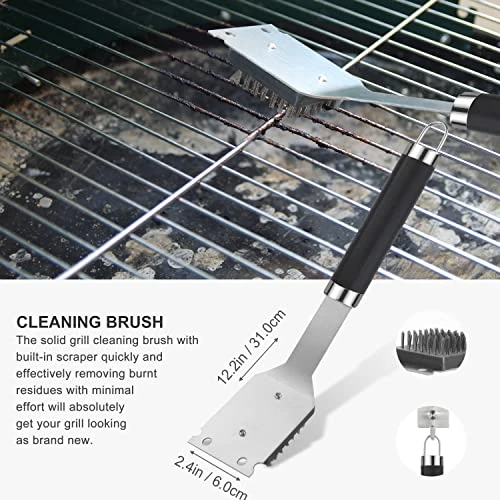 - EASILY CLEANING – The grilling tools has metal hanging loops for convenience and easy storage around your grill or kitchen when not in use. Also it is dishwasher safe, easy to clean.