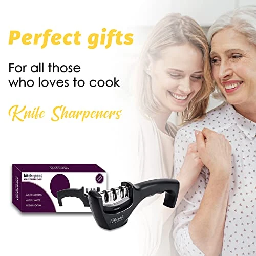 - 【QUICK SHARPEN IN SECONDS】This knife and scissors sharpener can easily and quickly repair and keep the knives sharp. Just place the blunt blade on the slots, gently pull the blade a few times to restore the original shape, and enjoy the sharpness in just a few seconds!