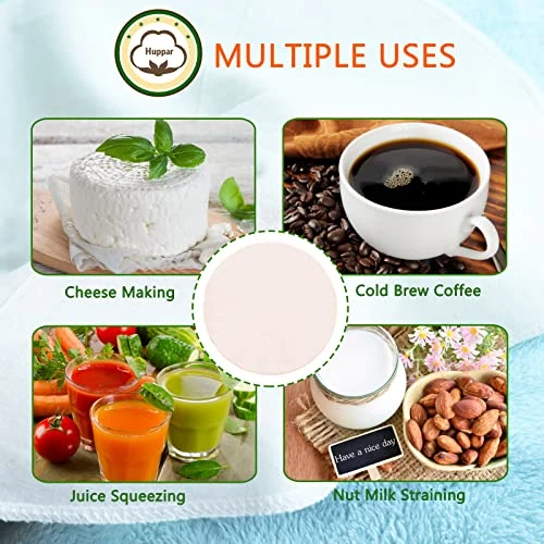 - 【Multiple Uses】It is very helpful for many uses in household, for cheese, yogurt, nut milk(almond/oat/soy) straining, butter, bread making, juice squeezing, coffee & tea filtering, basting or stuffing poultry, baking turkey, herbal infusions, cotton muslin, wrapping spices, crafting, cleaning, decoration etc.