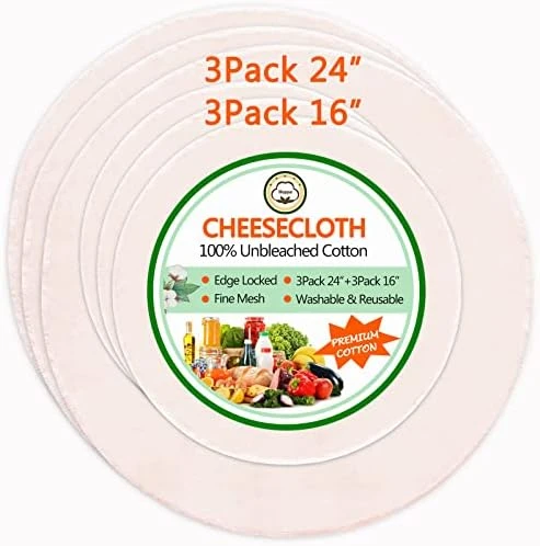 - 【6 Pack Circle Cheesecloth】 Round shape cheese cloth diameter 16”, perfect size for your straining. No need to cut by yourself, very convenient for your cooking and household. 6pcs a package, more cost effective.