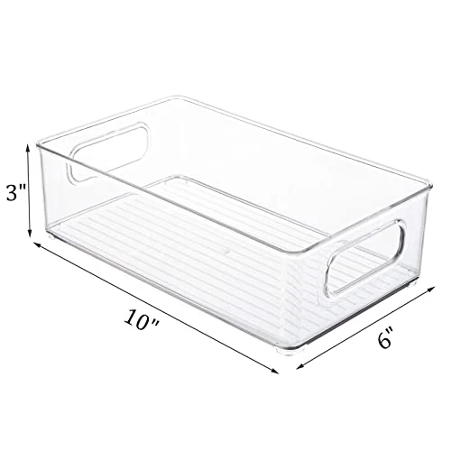 - Smart Storage – Set of 6 organizer bins for simple sorting, measures 10″L x 6″W x 3″H. Maximize storage space in refrigerator, freezer, cabinets, cupboards, pantry shelves, inside drawers, and more.