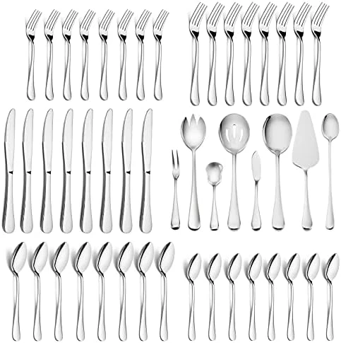 - Classic & Elegant Design: Mirror polished, smooth and shiny, never need to be polished. Classic and elegant design without complicated patterns disturbing your table setting. Its sleek and simple looking can match ANY tableware. This set is a must-have basic silverware for the family
