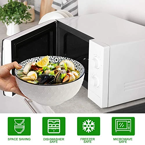 - GORGEOUS SIZE & VERSATILE – The extra large (8.3 inches wide and 68 FL oz) deep ramen soup bowls are ideal for salad, soup, side dish, ramen or pho, fruit or cereal for gathering. Also great as a buffet and BBQ staple for serving breads, crisps and tortillas, rice salads and vegetables. Perfect for everything from daily use to special occasions.