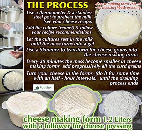 - ✅ CHEESE MAKING SET CONTAINS: * Mold for making hard cheese with a piston (6 pcs) Product output 1.2 kg., * Form for making soft cheese (3 pcs) Product output 0.75 kg