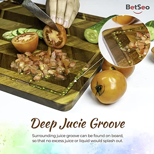 - ✅ NATURAL, HEAVY-DUTY ACACIA WOOD: Our wood cutting board is crafted with premium-grade acacia wood that is stronger, more durable, and longer lasting than plastic, bamboo, walnut, or traditional serving boards.