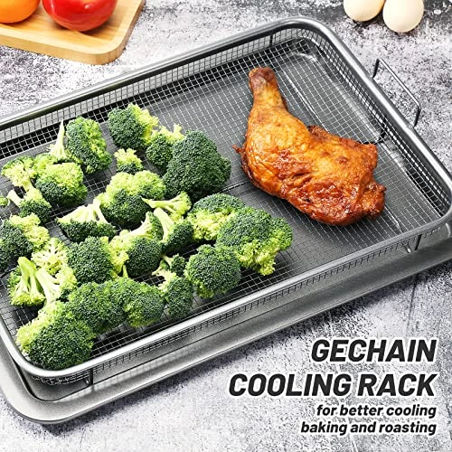 Air Fryer Basket For Oven, Stainless Steel Air Fryer Tray, Large Capacity 17.5“ X 11.8″, Oven Air Fryer Basket Baking Sheet Cookie Sheet Roasting Basket, Grey, 2 Piece Set