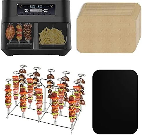 - 【Even heating】The Stainless Steel Air Fryer Rack & Barbecue Skewers are made of 304 stainless steel.Using these rack set is more conducive to the circulation of hot air inside the air fryer, and the heating is more uniform, easier to get delicious kebabs