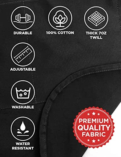 - Professional Chef Aprons: Our aprons are made of thick and durable 100% cotton twill fabric; Machine washable and tumble dry low for easy cleaning and long-lasting use.