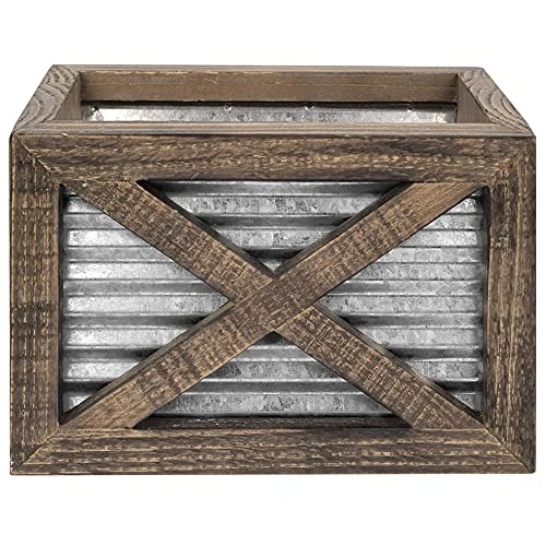 - RUSTIC KITCHEN DECOR: The corrugated galvanized metal and barn wood utensil caddy keeps your cooking utensils and accessories charmingly contained and easily accessible. Add this charming piece to your modern farmhouse kitchen for its functionality and good looks.