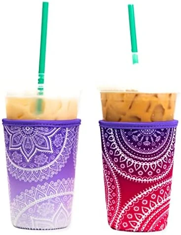 - Pack of 2 Ice Coffee Sleeve Sleeves – Comes In Unique Styles – This 2-pack includes 2 large sleeves to fit 32 oz drinks. You can choose from several fun, unique styles and even embroider and DIY your own custom design for the ultimate coffee cup ornament.