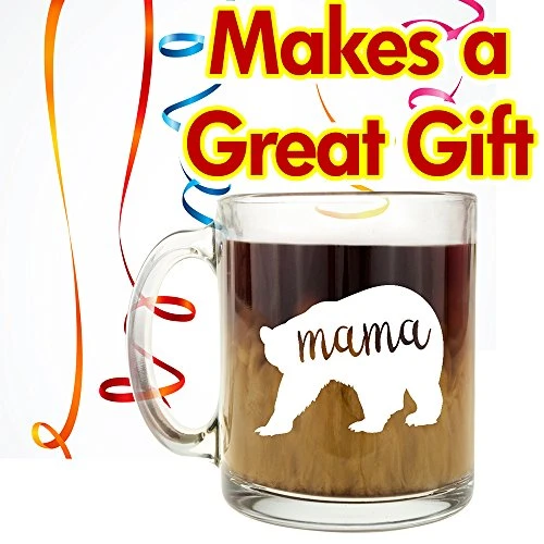 - SAY IT WITH COFFEE – The unique Mama Bear – Glass Coffee Mug design is printed on both sides with long-lasting bold white print.