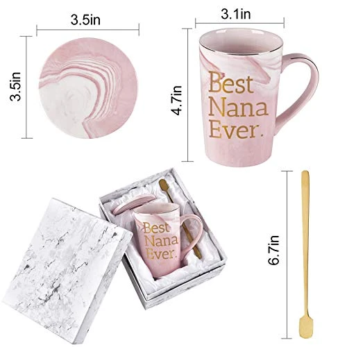 - GIFT BOX PACKING: 1 x 14 oz Mug, 1 x Coaster, 1 x Spoon come in a nice box with silk and organized neatly. No need to repackage, this best nana ever mug is ready for gift giving for grandma