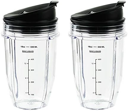Blender Cups For Ninja Blender, 18OZ Cup With Sip & Seal Lids Compatible With 900w 1000w Nutri Ninja Blender Auto IQ Series (2 Pack)
