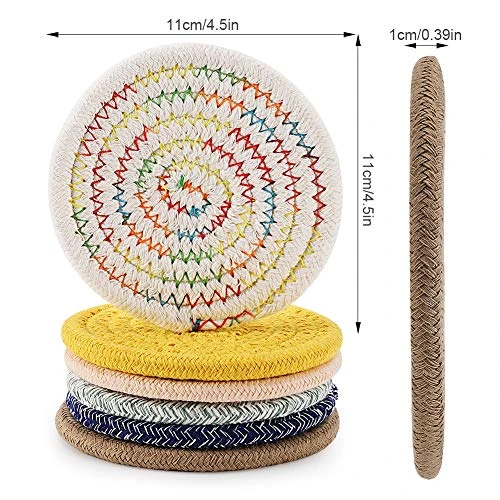 - Diameter: the woven coasters are 11 cm in diameter, and the shape is round with 6 colors; The coasters is by handmade, please allow 1-2cm error.