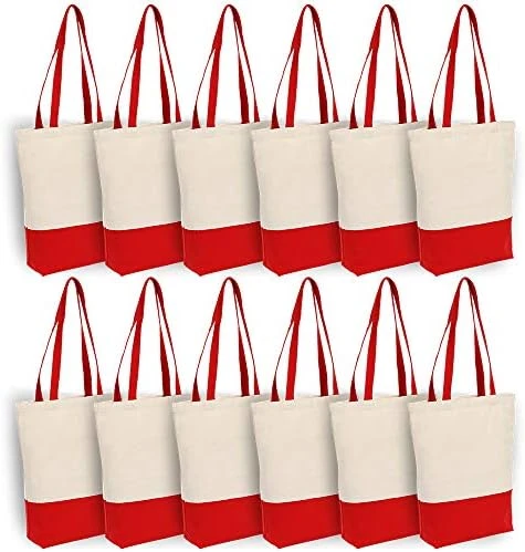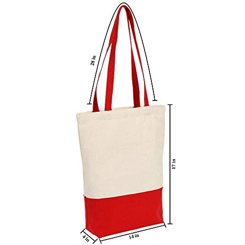 Canvas Tote Bag Heavy Duty 12 Oz Cotton With Bottom Gusset Grocery Beach Shopping Bag 17x14x4 Inches – 6 Pack (Red)