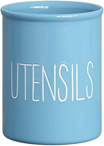 - Farmhouse kitchen utensil holder – Hold your everyday kitchen tools like spoons, whisks, and knives in this large utensil crock spatula holder. This farmhouse utensil holder for countertop will make a stunning decoration in your home.