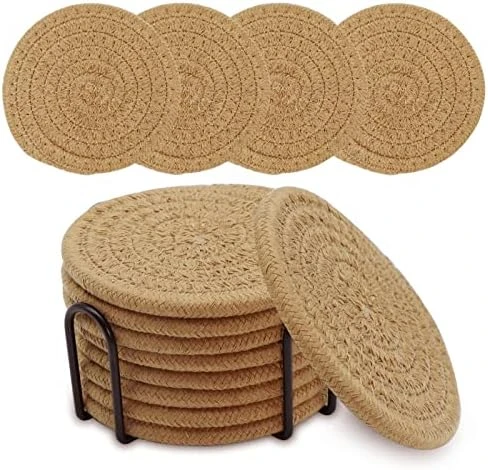 - SUPER ABSORBENT MATERIAL – These farmhouse coasters are made of absorbent cotton. Good water absorption keeps your cup bottom dry and protects your furniture. Easy fix for these pesky rings of moisture on your furniture. Enjoy a laugh and your favorite drink.