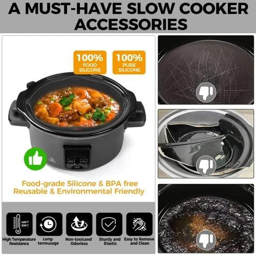 - 【Reusable and Dishwasher Safe】We know that cleaning crock pot is a very troublesome thing, so please use our crock pot liners, which will save your crock pot clean time, these silicone liners is very soft and non-stick. You can flip the silicone liners from the inside out to pour out food residues and dirt. After cooking, just wash the silicone liners with warm water or put it into the dishwasher with one click to clean it. It is an excellent kitchen gadgets and cooking accessories.