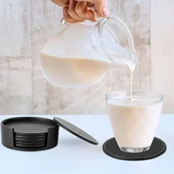 Set Of 6 Leather Drink Coasters Round Cup Mat Pad For Home And Kitchen Use Black, 3.94″