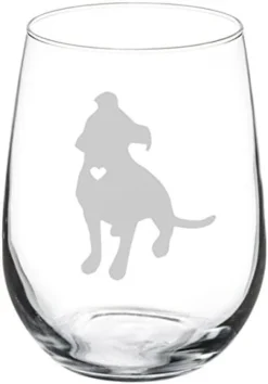 MIP Wine Glass Goblet Cute Pitbull With Heart (17 Oz Stemless)