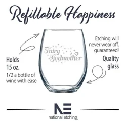 Funny Wine Glass With “Fairy Godmother” Saying, Classic, Stemless Wine Glass For Women