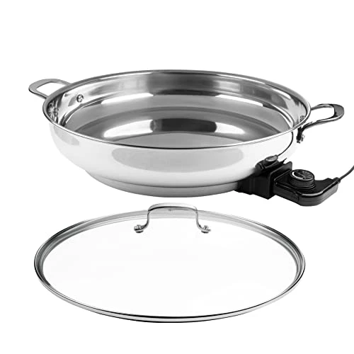 - The CucinaPro Electric Skillet has securely attached riveted handles that make it very safe to use. Skillet can be hand washed or wiped over with a damp paper towel. Always use caution near hot surface.