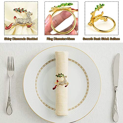 - [Perfect decoration tool]: Add a dash of luxury and class to your Christmas table this year. These are the little details which make for an exquisite table setting. Slip your napkins into these handy and luxurious napkin rings to be presented aesthetically on your dinner plate, ready for your guests to use.