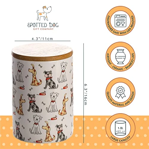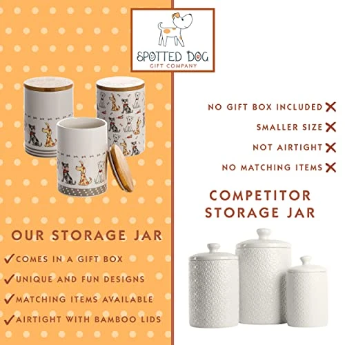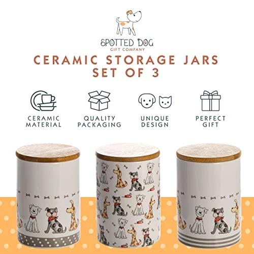 - Paw-some dog gifts for dog lovers and dog owners. These ceramic jars come ready boxed with quality Spotted Dog Gift Company gift box packaging. Buy as a gift for friends or family. This quality this storage jar set of 3 will sure to be well received and look amazing on any countertop.