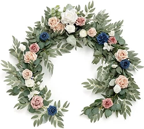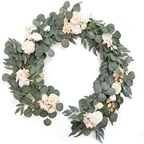 - Lifelike Greenery: On silk eucalyptus and willow leaf garlands base, silk white chorale rose as the main flower accented with nigella flower, avalanche rose, Vendela rose, hydrangea, baby breath, willow branch, fern, and clematis leaf.