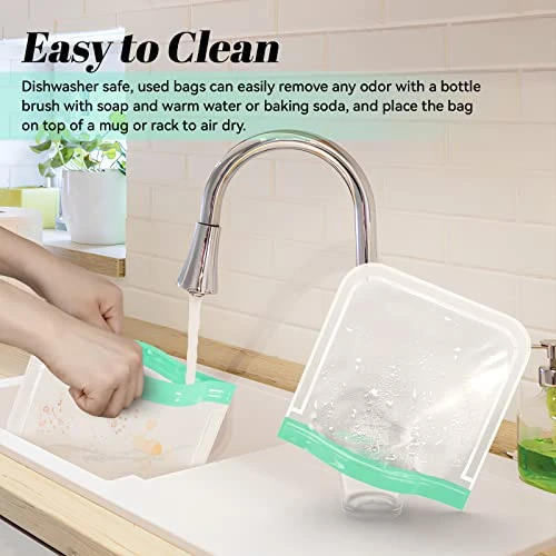 - 🍀[Clean & Eco-Friendly]: Place the reusable gallon bags on top of a cup or rack to air dry after washing to prolong the life of the reusable freezer bags. One reusable food storage bag avoids the waste of over 800 single-use plastic bags, which not only saves you money, it saves the planet.