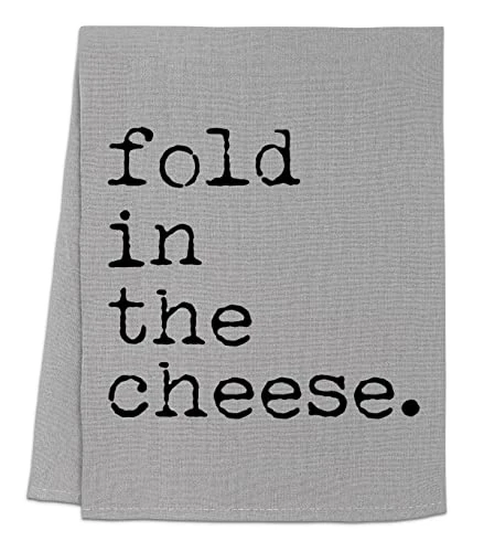 Funny Dish Towel, Fold In The Cheese Flour Sack Kitchen Towel, Sweet Housewarming Gift, Farmhouse Kitchen Decor, White Or Gray (White)