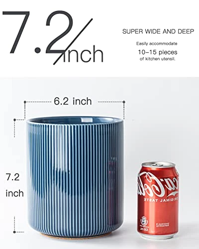 Getstar Utensil Holder, Large Kitchen Utensil Holder For Kitchen Counter (H7.2” X W6.2”), Ceramic Cooking Utensil Holder With Cork Mat, Kitchen Decor For Counter (Navy, Utensils Not Included)