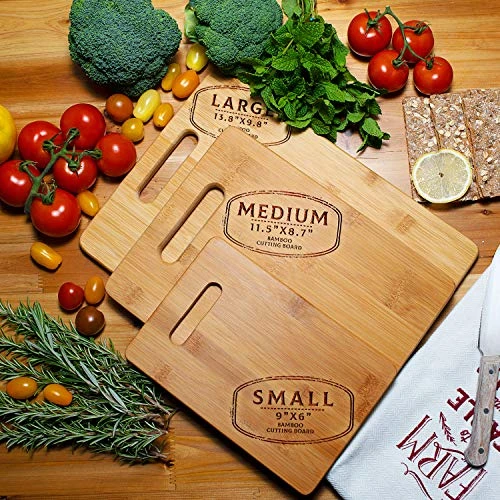 - 12 DESIGNS – 3 SIZES & FREE CUSTOMIZATION – We produce high-quality engraved cutting boards with individual design of your choice. The engraving is displayed on the one side of the board while the second side can be used as usual cutting board.