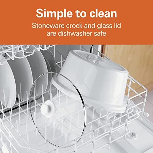 - SIMPLE TO CLEAN: This slow cooker has a removable stoneware crock and glass lid that are dishwasher safe and easy to clean. The crock can also be used in the oven or microwave