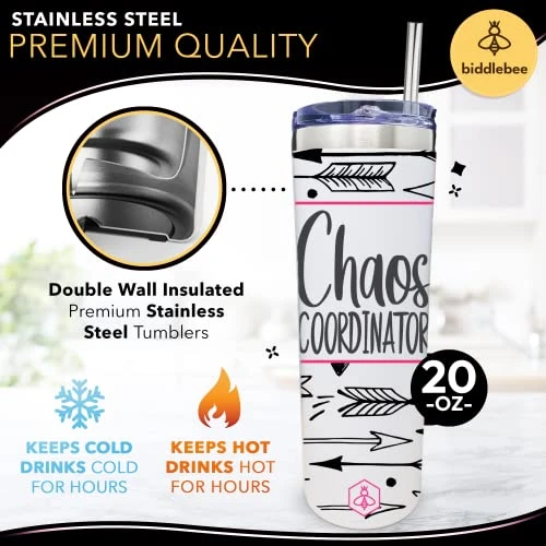 - Premium Lid & Straw: Our insulated tumblers include a premium lid with a stainless steel easy to sip straw. If you prefer to sip, just remove the straw – the lid is great for sipping was well. The Biddlebee insulated cup makes a great gift for women for Valentine’s Day, a birthday, Mother’s Day, birthdays, and to say thank you. Find the perfect print for you wife, mom, sister, best friend, co-worker, or other family member or friend among our many designs.