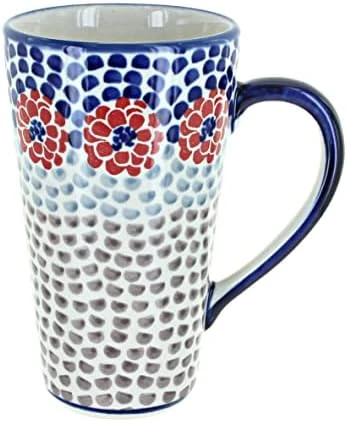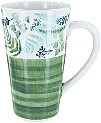 - A tapered silhouette and loop handle offer a comfortable and stylish option while glaze protects from coffee stains. Dishwasher safe for convenient cleanup. 5.75 inches tall, 14 oz.