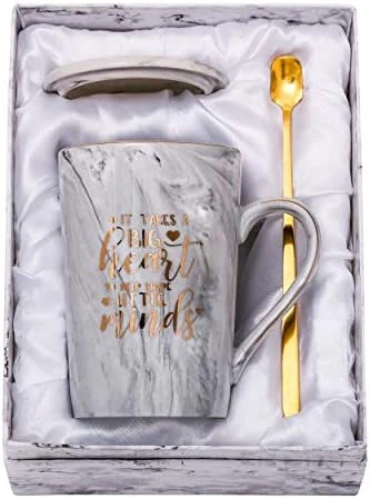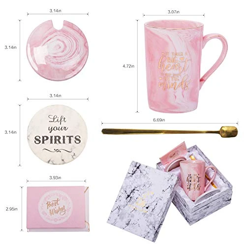 - ✔✔❤Gift Box Packing💛:All you get are showing in the Pic2.Comes in Stylish Packaging with Silk-Finished Interior. This item is ready for gift giving. No need to repackage.1 x 14 oz mug,1 x cup lid, 1 x spoon,1 x Pink Greeting card(You can write down your blessings to your friends).Larger size mugs and more accessories offered,meet your further coffee drinking need or gift giving need!