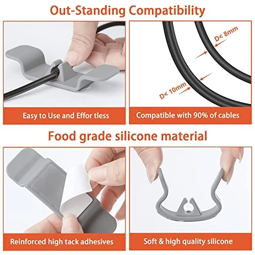 - High-Quality Material:Each kitchen appliance cord winder is made of high-quality silicone, durable and not easily deformed,our appliance cord organizer compatible with 90% of the kitchen cord, Is a useful kitchen ccessories.The sticky adhesive pad is non-toxic, odorless, and will not leave marks on kitchen appliance surface.
